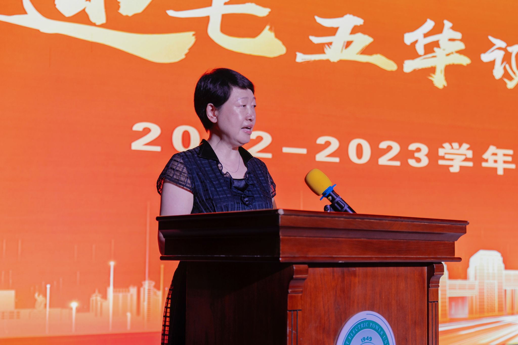 詹丽萍指出,学校举行国家奖学金颁奖典礼不仅是为了奖励获奖学生,更是为了激励广大同学向榜样学习,向优秀看齐,做讲忠诚、讲团结、讲感恩、有扎实学识、有踏实作风的新时代东电青年。