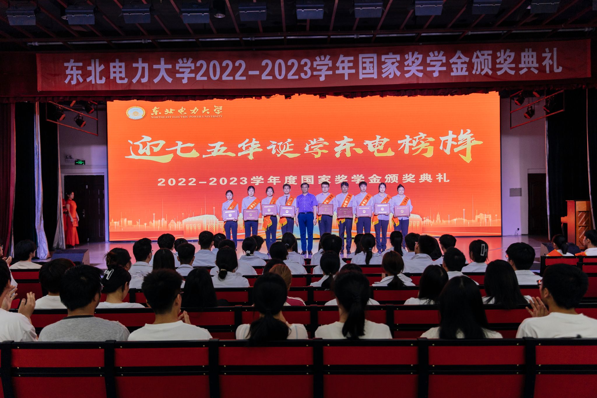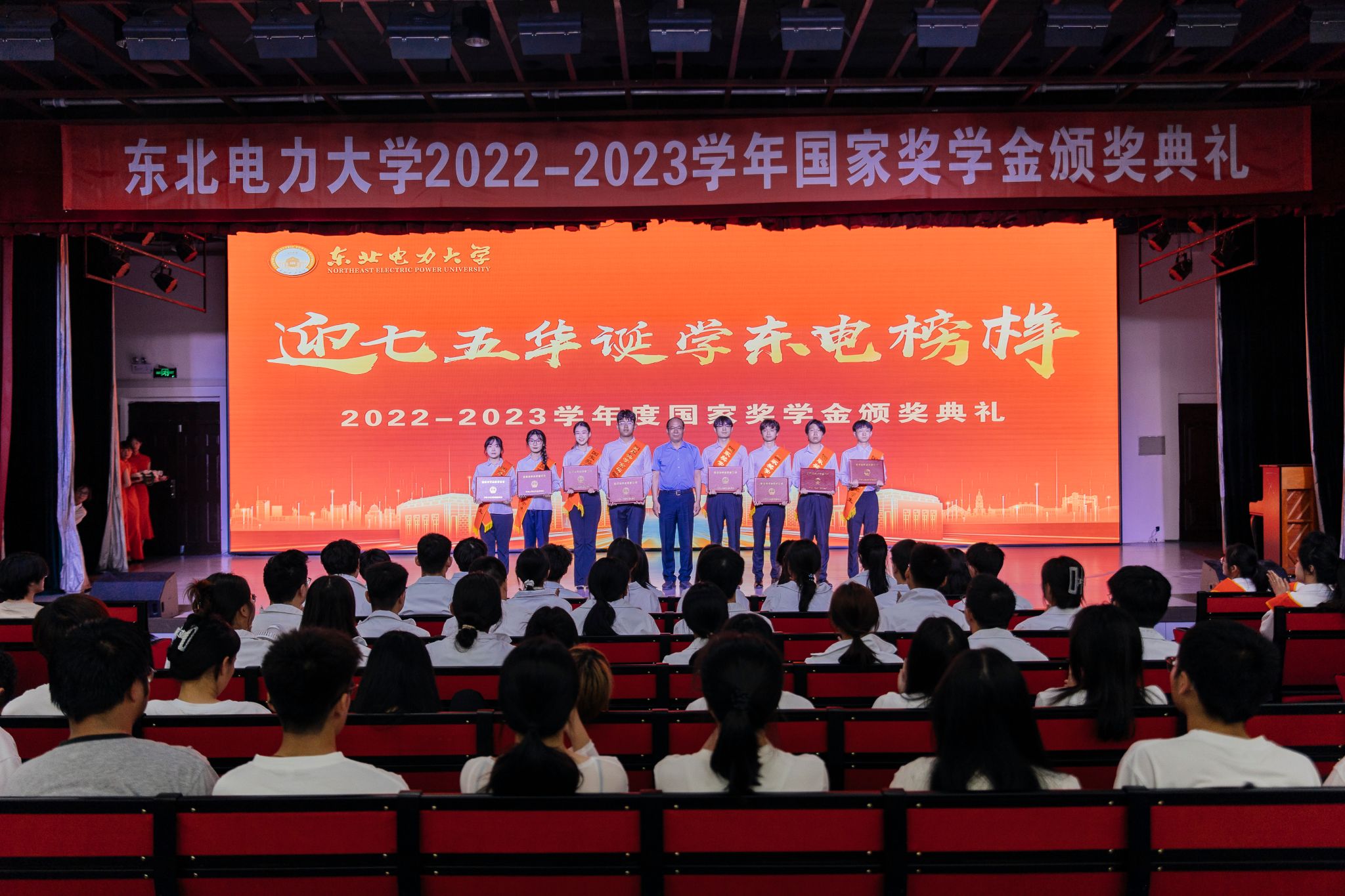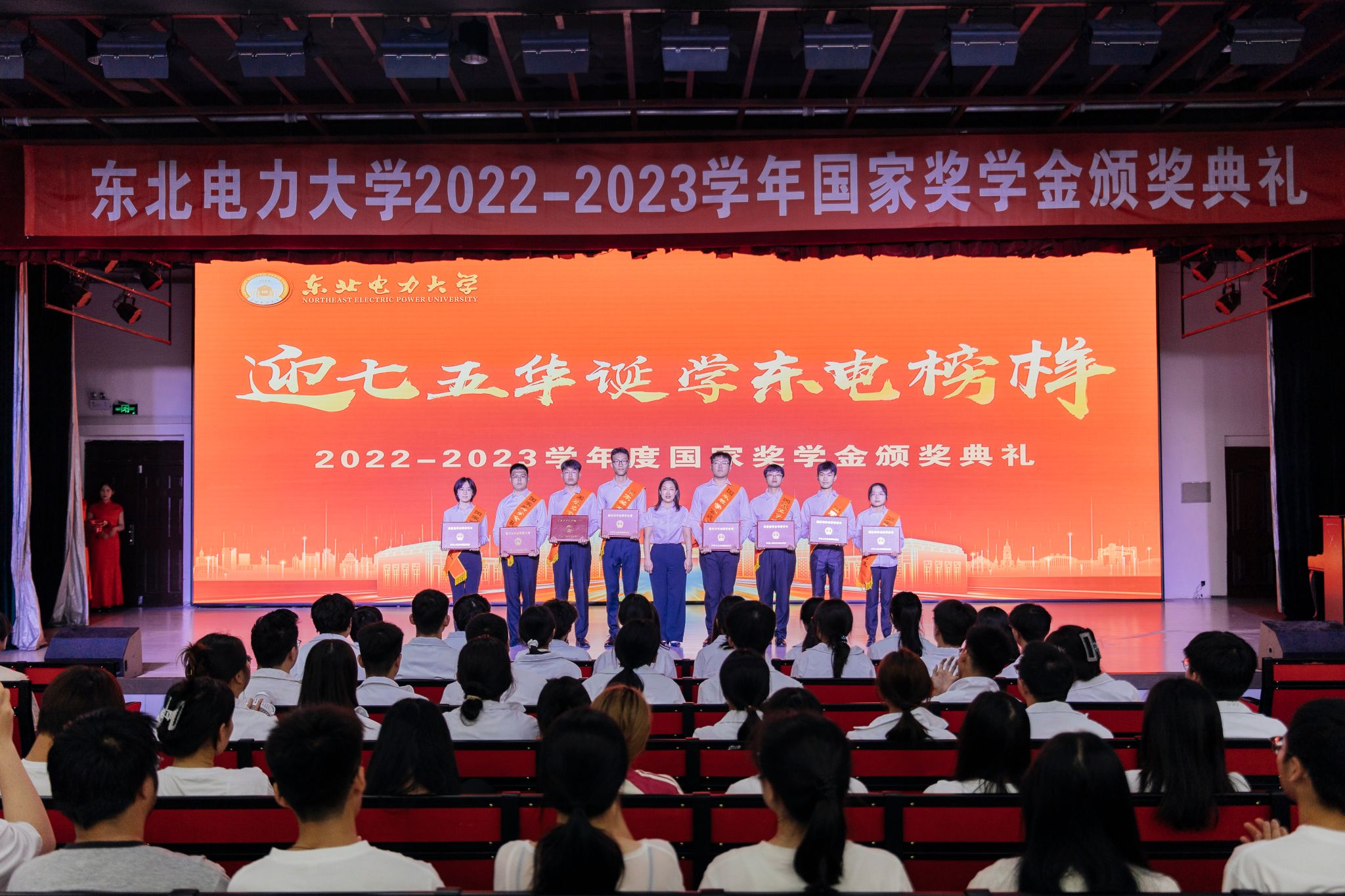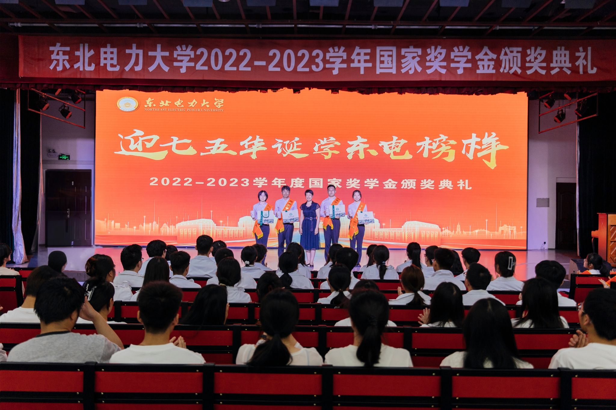 典礼上,党委学生工作部负责同志宣读了《东北电力大学关于表彰2022-2023学年国家奖学金获得者的决定》,詹丽萍为参加宣讲的4位同学颁发奖品,与会领导为25位国家奖学金获得者颁发荣誉证书,国家奖学金获奖代表詹雨萌发表获奖感言。