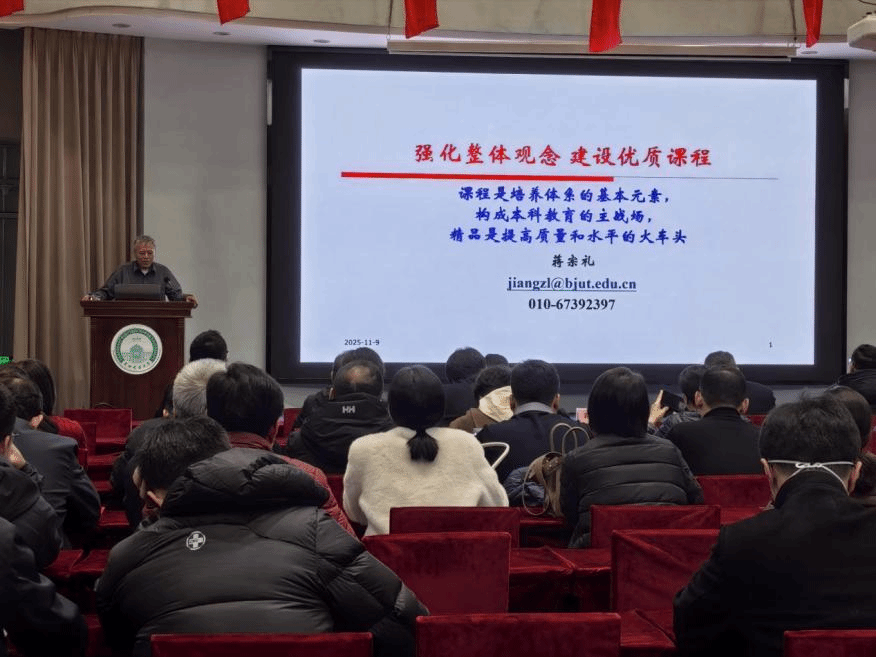 蒋宗礼作题为 “强化整体观念 建设优质课程”的专题报告,报告中,蒋宗礼详细梳理了国家精品课程、慕课到一流课程的发展历程,强调课程建设始终以 “融入体系、走向科学、培养能力”为核心,在数字化技术迭代中坚守育人本质。他指出,课程建设需立足OBE理念,摆脱单一知识传授的局限,聚焦复杂工程问题解决能力培养,要通过构建 “知识-能力-素质”三维目标,重组教学内容,强化理论与实践结合,让学生掌握终身受用的思想方法。本场报告深入浅出、理论联系实际,为学校下一步推进课程改革和课程建设,全面提升课程质量与人才培养水平提供了指引。