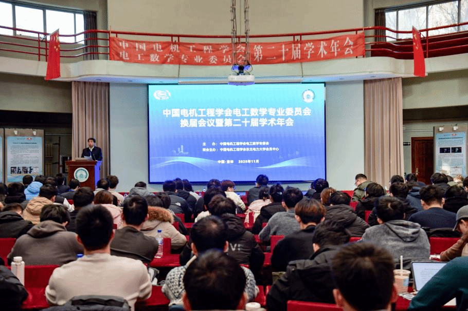 当天下午,召开第二十届学术年会,杨茂主持会议。会上,电子科技大学胡维昊教授、武汉大学刘承锡教授、吉林大学贾继伟教授、东北电力大学姜涛教授受邀围绕“AI与电工数学融合应用”主题分别作《智能计算方法探索及应用》《基于全纯嵌入与解析延拓理论的潮流收敛性提升研究及应用》《智能计算方法探索及应用》《全纯嵌入计算理论在电力系统应用初探》的研究报告。