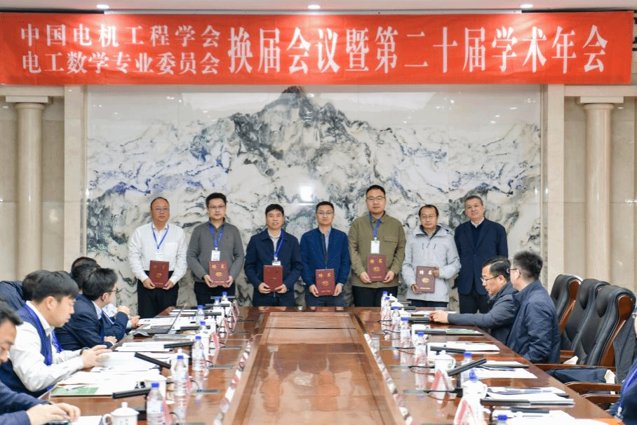 崔炜为电工数学专委会第八届委员会主任委员、副主任委员颁发聘书并合影。
