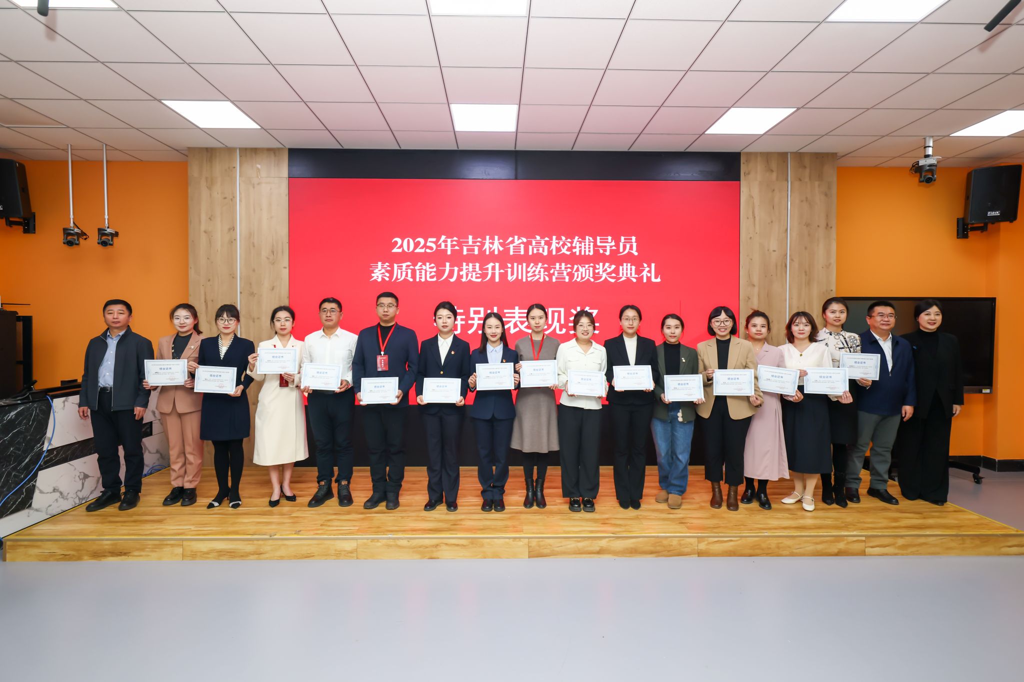 12月5日,“2025年吉林省高校辅导员素质能力提升训练营”落幕,我校辅导员王玮老师获训练营“十佳标兵”奖、陈佳老师获训练营“特别表现”奖。