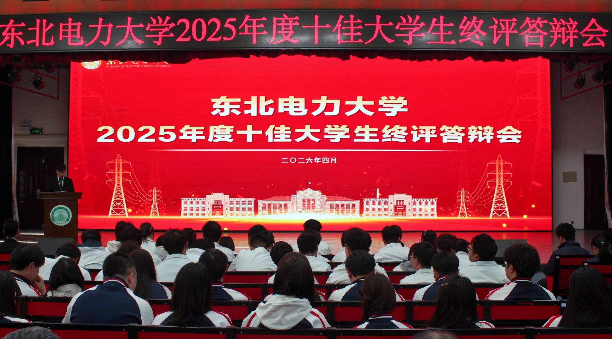 4月21日,学校2025年度十佳大学生终评答辩会在大学生活动中心举行。学校党委副书记詹丽萍出席,我校热动02级校友、鼎基电力工程有限公司董事长、学校鼎基电力奖学金、奖教金设立者唐明亮担任校外评委。党委常委、党委宣传部部长刘辉,党委学生工作部、教务处、科产处、关工委和各基层学院党委负责人担任校内评委。