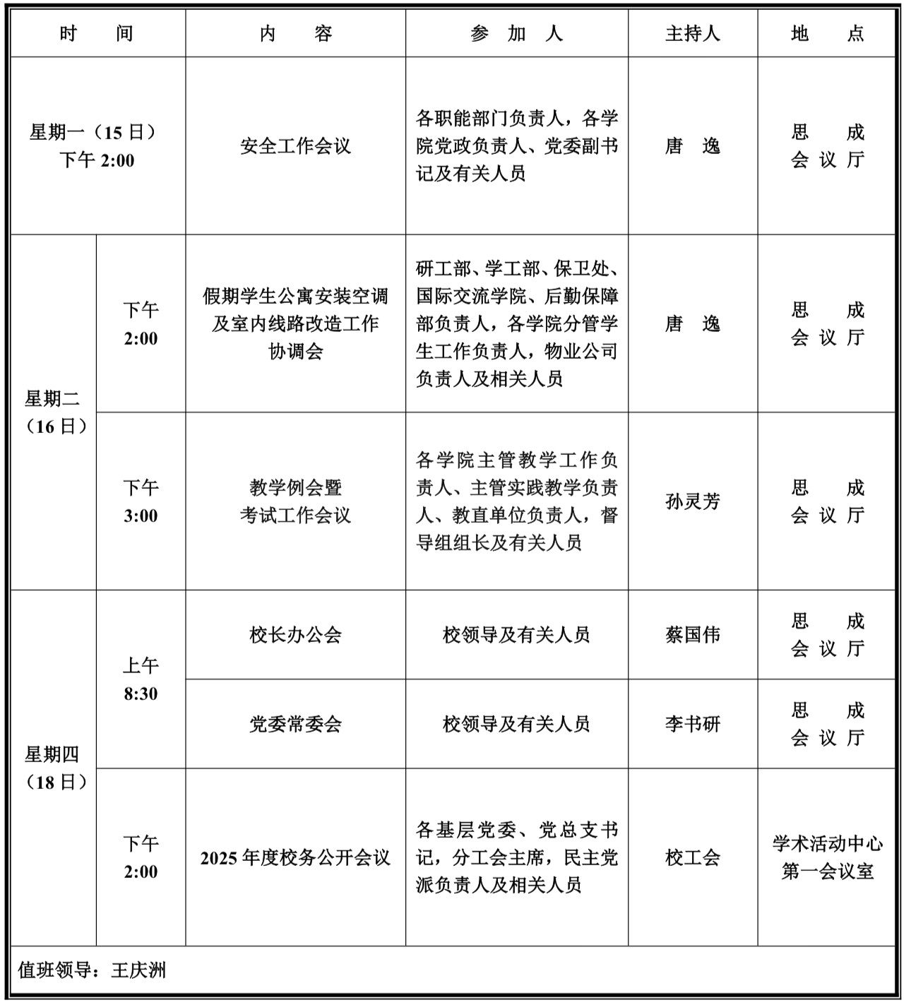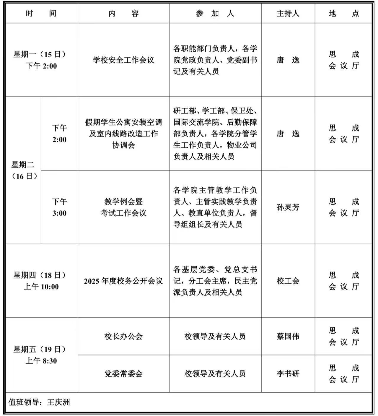 第十七周学校活动安排