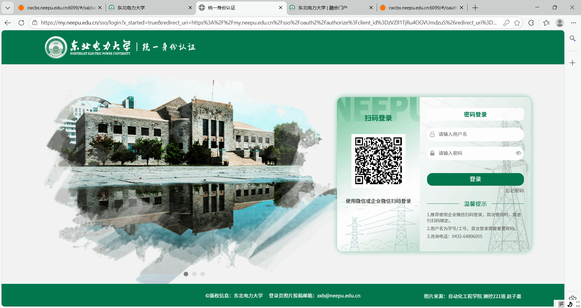 1、首先登录融合门户:https://my.neepu.edu.cn/,扫码或者账号密码进行登陆。
