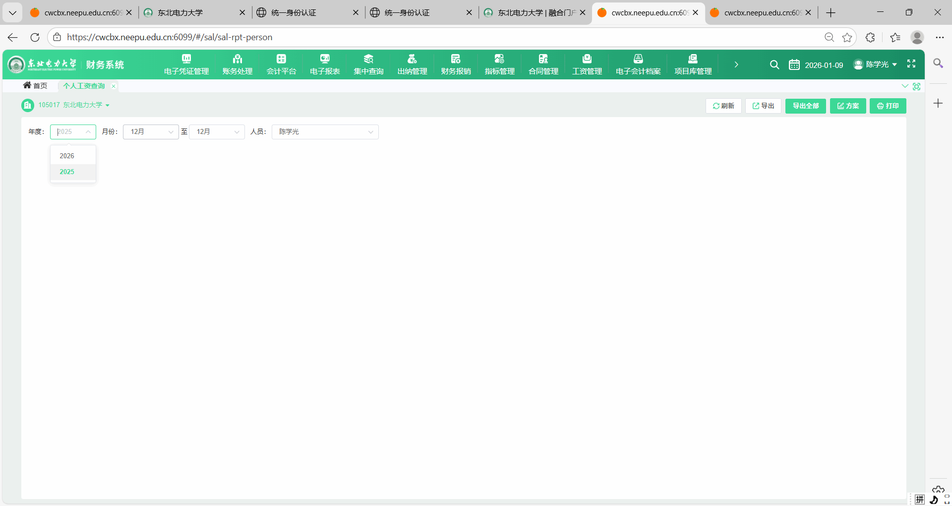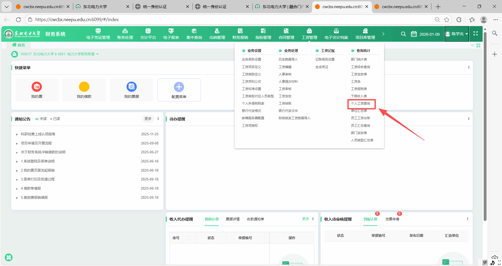 3、登录进财务系统后,点击工资管理,点击个人工资查询。